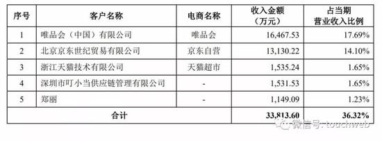 若羽臣的渠道分销业务中,公司的客户主要是京东自营、唯品会、天猫超市等电商客户。