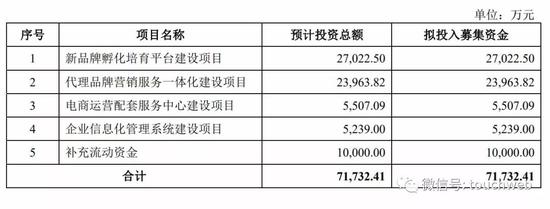 5507万元用于电商运营配套服务中心建设项目;5239万元用于企业信息化管理系统建设项目;1亿元用于补充流动资金。