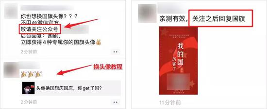 还有的拆穿换头像“小骗局”,在朋友圈发制作头像链接的。很多公众号也都趁此机会发布制作小国旗的头像教程,让用户回复关键词引导关注公众号,趁此机会大涨一波粉儿。