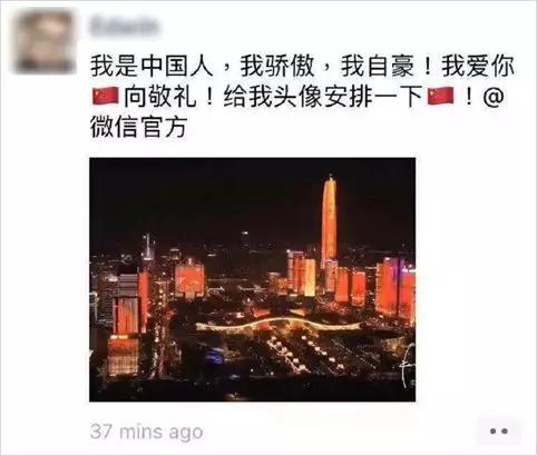 今早一来,正嚼着面包刷着朋友圈,发现今天朋友圈特别统一,被“请给我一面国旗@微信官方”刷屏了!