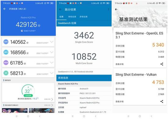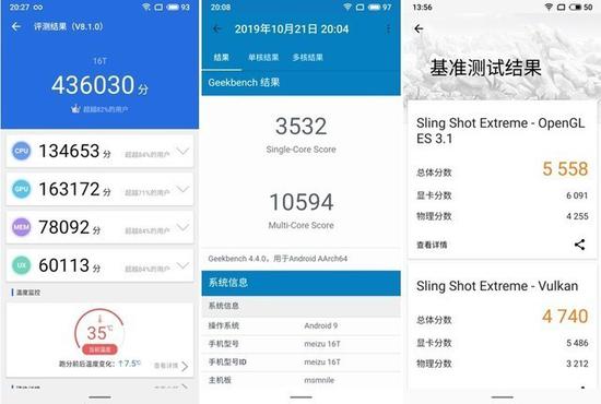 单看跑分,红米K20 Pro搭载的同样是骁龙855处理器,两款手机的跑分成绩在目前市售的手机中已经可以排上前列。但从整体的跑分来看,魅族16T比红米K20 Pro要高一些。追溯原因的话,可能与魅族16T本次标配了更高的闪存UFS3.0有关。