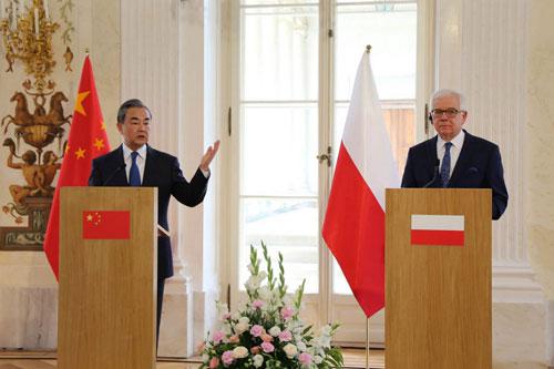 当地时间2019年7月8日,国务委员兼外长王毅在华沙同波兰外长查普托维奇共同会见记者时,回答了关于5G问题的提问。王毅指出,5G是人类通讯科