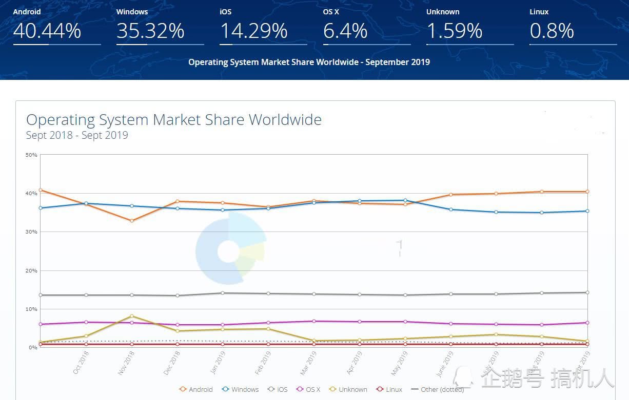 根据机构发布的数据显示,截至到2019年9月份,安卓依旧是全球第一大操作系统,市场份额为40.44%,其次是微软的Windows(主要为PC端),市场份额为35.32%。第三名是苹果的iOS系统,市场份额为14.29%,第四名是苹果的OS X系统,占据了6.4%份额,Linux排名第五,占据了1.59%份额,剩下的就是其他系统。分析师预估,预计年底,鸿蒙系统在中国市场的份额将达到0.1%,到2020年的份额提升到5%。而由于中国市场比较庞大,因此能帮助鸿蒙系统的全球市场份额占到2%,一举超越排名第五的Linux。