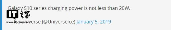 据i冰宇宙爆料称,三星Galaxy S10将采用至少20W功率的有线充电。