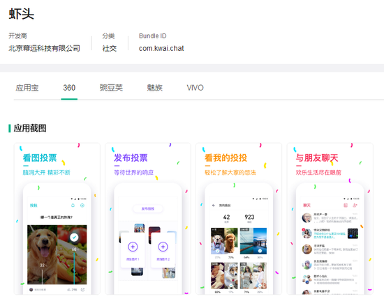 据蓝鲸TMT记者调查,“虾头App”实际上是2017年快手在外部孵化的一款社交产品,侧重于陌生人社交,至今已有两年发展历史。不过,记者下载这款产品并体验后发现,目前其内部功能较为单一,总体仍不算完善。