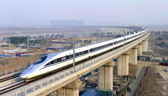 近日,一列造型优美的高铁原型列车在中国亮相,其设计时速可达600公里(370英里)。这比目前世界上运行速度最快的京沪城际列车每小时快150多