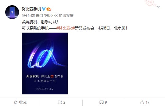 4月1日消息此前努比亚在巴塞罗那的MWC 2019上展示了nubia-α腕机,并确定了该机的欧洲售价,现在这款手机的国行版本来了,官方宣布其